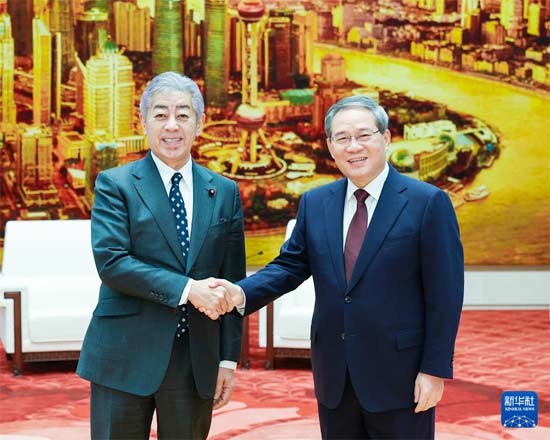 12月25日,國務院總理李強在北京人民大會堂會見來華訪問的日本外相巖屋毅。   新華社記者 劉彬 攝