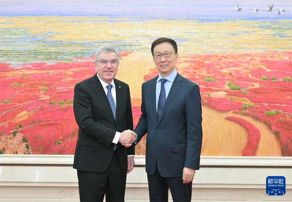 韓正表示,中方高度贊賞巴赫主席任內為促進國際奧委會和中國間的合作作出的重要貢獻,習近平主席對巴赫主席和國際奧委會的工作給予高度肯定。哈爾濱亞冬會剛剛圓滿落幕,為世界呈現了一屆“中國特色、亞洲風采、精彩紛呈”的高水平冰雪運動盛會。中方一貫重視發展體育事業,積極參與國際奧林匹克事務,愿在更多領域同國際奧委會深化合作,共同推動奧林匹克運動發展,為促進世界和平、團結和進步作出新貢獻。