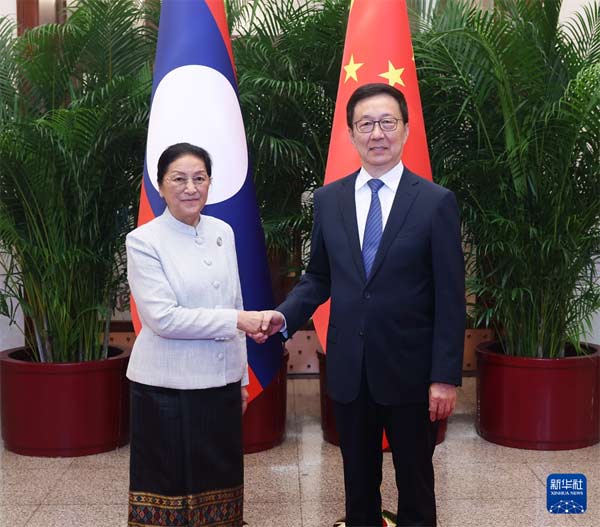 10月14日,國家副主席韓正在北京會見來華出席全球婦女峰會的老撾國家副主席巴妮。